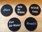 Kaffeepad aus Filz, mit verschiedenen Sprüchen beplottert, Größe ca. 25 x 15cm und bei 30° waschbar (aber gerade liegend trocknen).