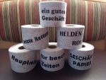 WC Papier Banderoleaus Filz mit verschiedenen Sprüchen beplottert. Verschiedene Farben.